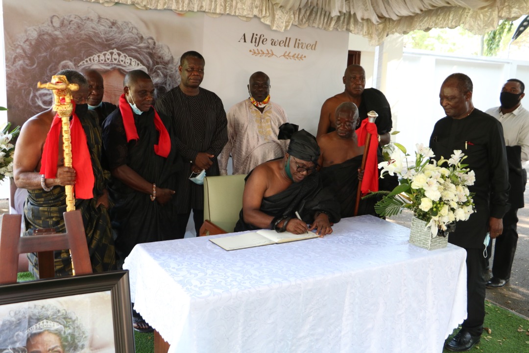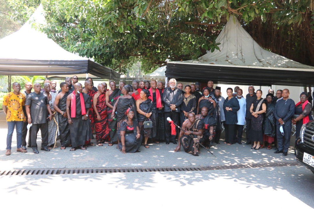 The President of the National House of Chiefs and the Agbogbomefia of the Asogli State, Togbe Afede XIV and a high-powered delegation of chiefs representing the National House of Chiefs, the Volta Region House of Chiefs and the Asogli State is the latest group to mourn with former President Jerry John Rawlings and the Agbotui family on the demise of Madam Victoria Agbotui.