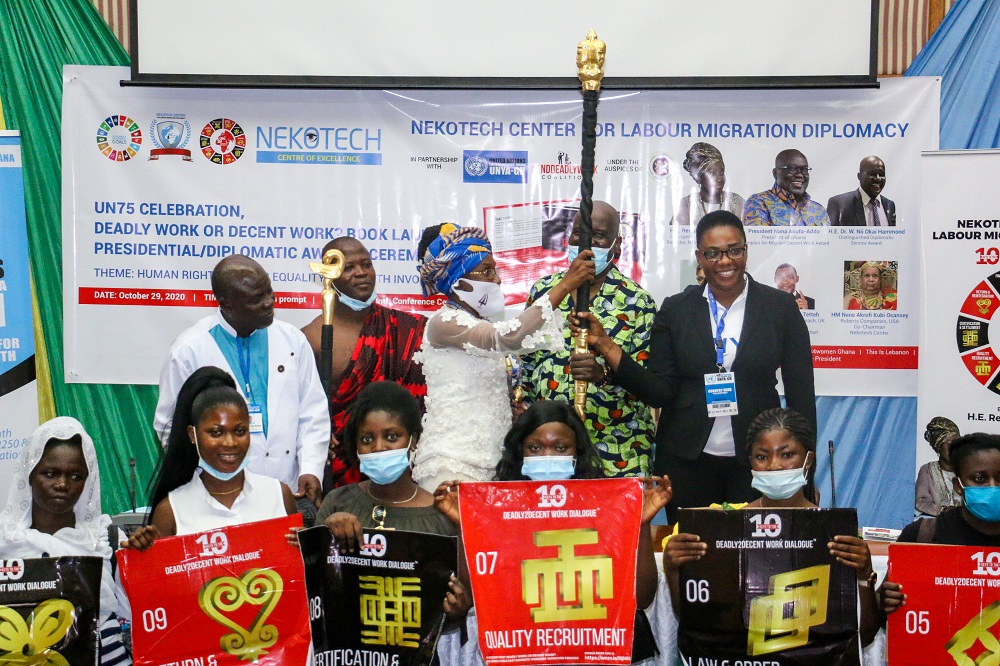 The president also pledged to consider the UN ILO Conventions C-189 and C190 for ratification while expressing gratitude to the Nekotech Center for Labour Migration Diplomacy, the United Nations Youth Association-Ghana and the Global #Enddeadlywork Coalition for the award.