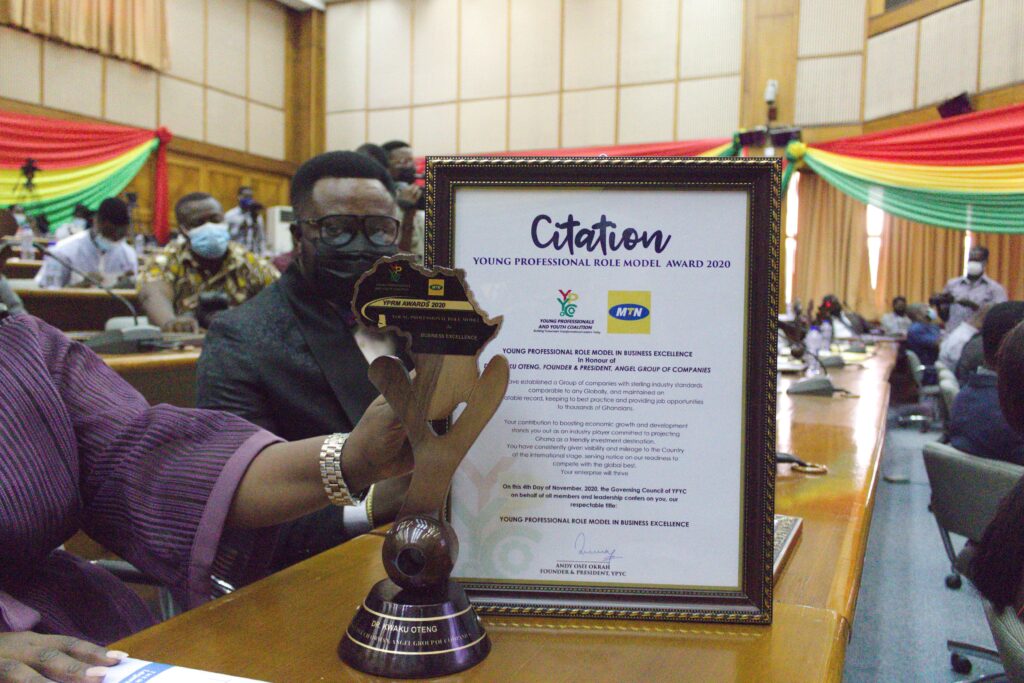 The Chairman of the Angel Group of Companies, Dr Kwaku Oteng has been awarded the Young Professional Role Model in Business and Finance Excellence in Ghana award.