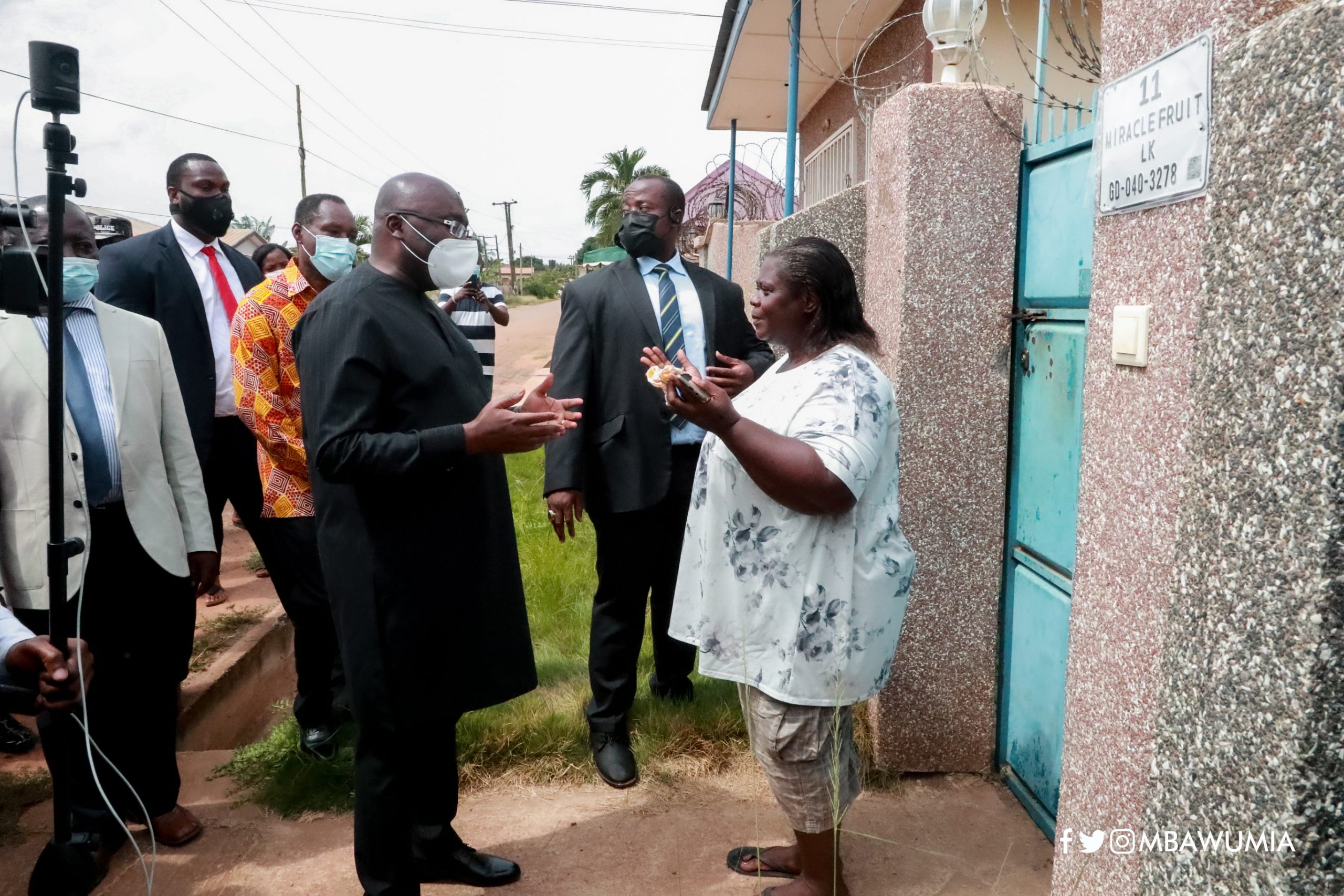 Accompanied by the Minister for Local Government, Hon Dan Kwaku Botwe, the Managing Director of the State Housing Company, Kwabena Ampofo Appiah, and officials of LUSPA led by Mr Owusu Sekyere, the Vice President interacted with residents who had already received their unique addresses, and witnessed the fixing of plates onto properties in the Adenta Municipality on Monday, 12 April 2021.