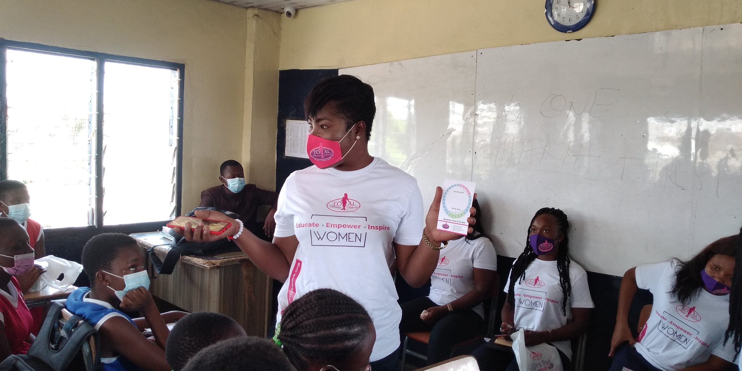 TWN whose goal is to enhance womanhood through education, empowerment and inspiration, made donations to the girls to help boost their confidence. Some items gifted include sanitary pads, hand sanitizers and beads serving as a device to help them calculate their periods.