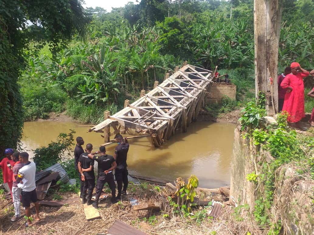 The residents of Koforidua Okorase in the Akuapem North district of the Eastern Region are demonstrating over the collapse of a bridge that links the community to another major community.