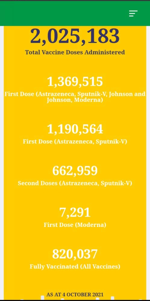 As at October 4, 2021, persons who have been fully vaccinated, according to the service, are 820,037 .