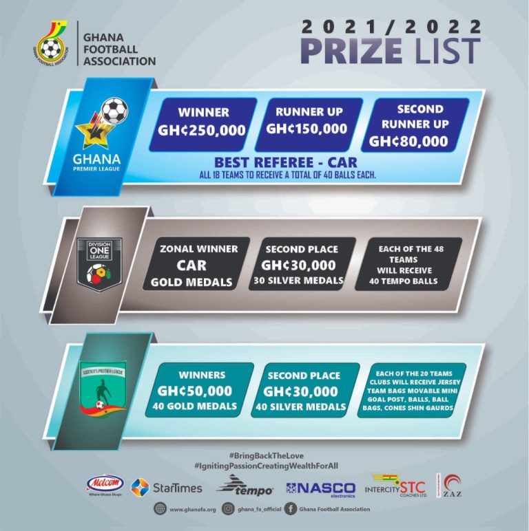 The Ghana Football Association (GFA) has announced prize packages for its new upcoming football season which gets under way on the weekend of 29th, 30th and 31st October, 2021.