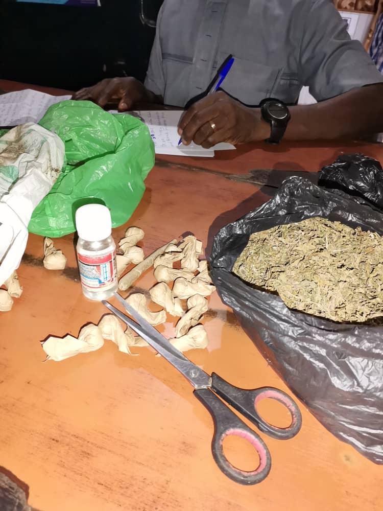 Meanwhile, some 20 wraps of substances supposed to be narcotics, together with dried leaves believed to be marijuana, a lighter and a knife have been retrieved from the suspects.