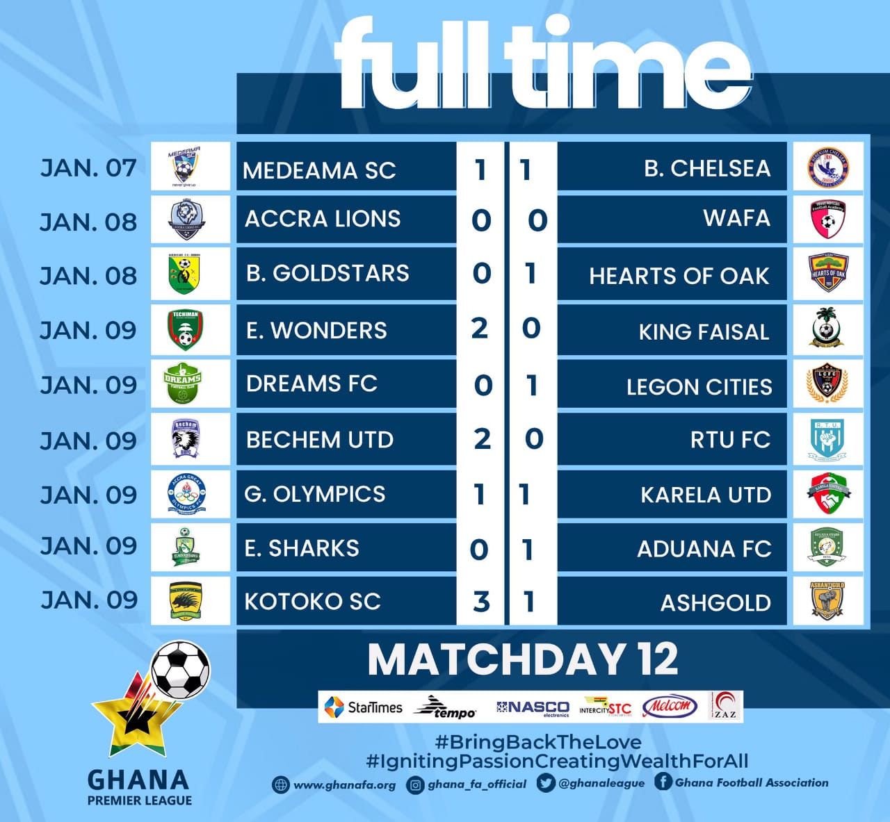 GPL week12 review: Kotoko wins Ashanti derby to lead table, Hearts wins at Bibiani as Aduana returns to winning ways