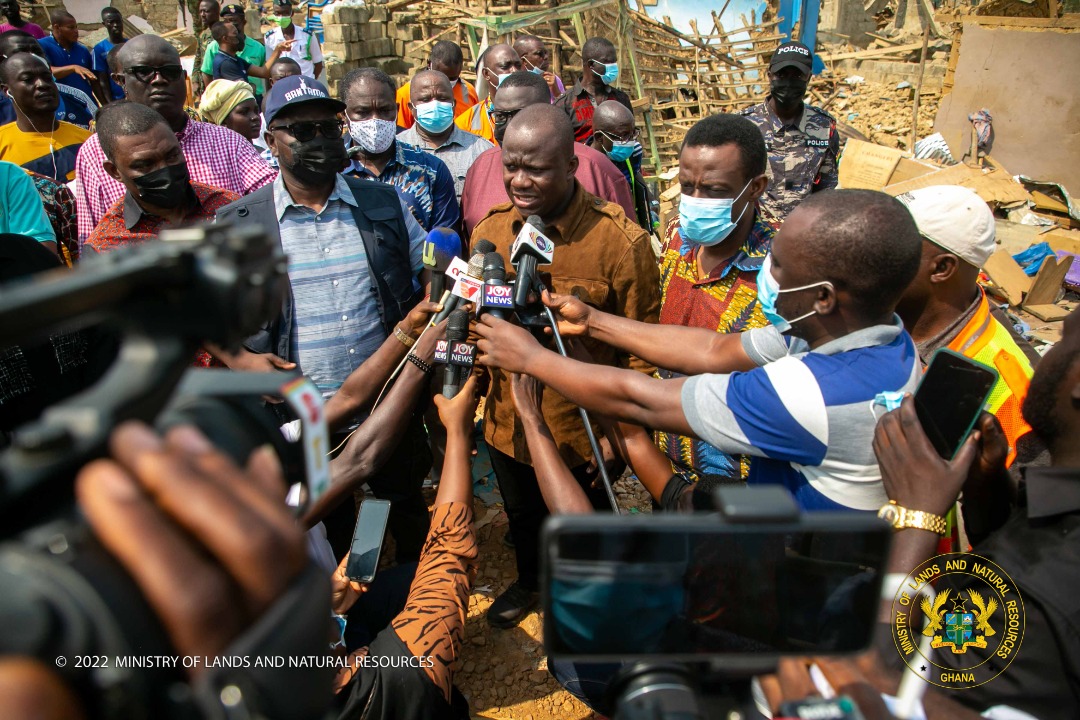 The delegation visited the temporary site being built to house the displaced families. Following the visit, the Mr. Jinapor said the Ministry of Lands and Natural Resources will set up a committee, made up of members from the relevant agencies, to oversee the rebuilding of the community.