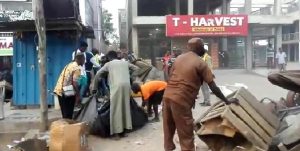 The exercise saw a number of tables and wooden structures belonging to the traders being destroyed and some metal boxes transported to the market for the owners.