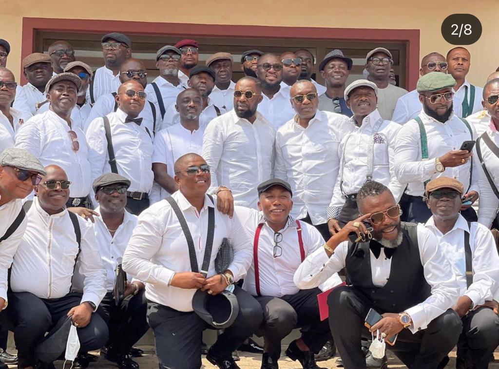 The gentlemen clad in white long sleeves and a pair of black trousers and shoes to match, sung songs of praises to express their admiration for their founder at the Kotoka international airport, where they chartered a flight to Kumasi for the celebration.