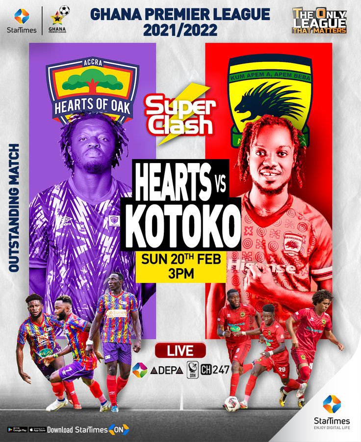 Eightth placed Hearts of Oak having garnered 24 points from 16 matches h,ost league leaders Asante Kotoko, who have also accumulated 36 points same number of matches played in the 2021/2022 Ghana Premier League.