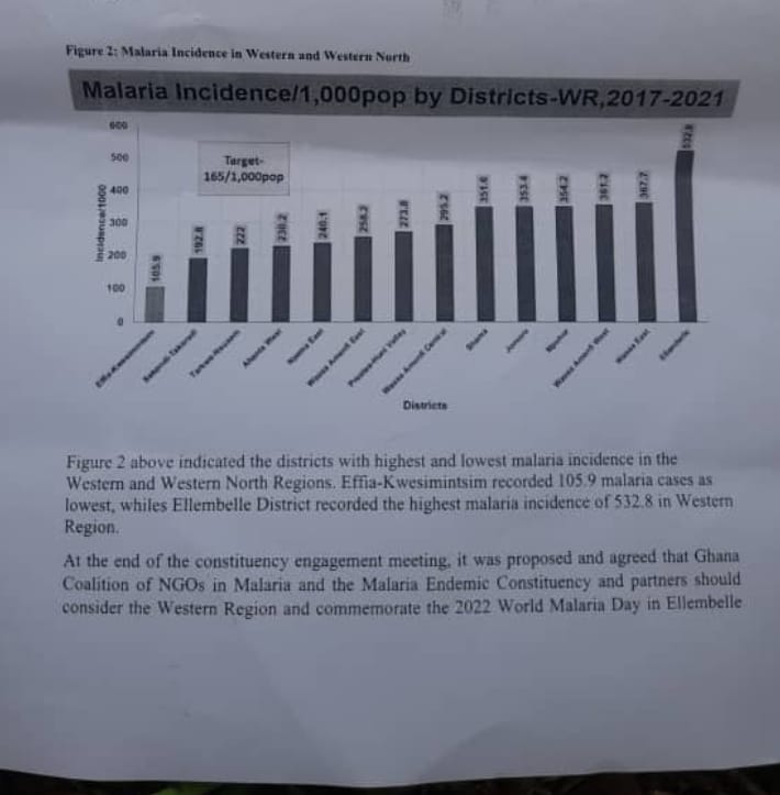 The Ghana Coalition of Non-Governmental Organizations in Malaria (GCNM) has identify the Ellembele District as a malaria endemic area in the Western and Western North regions following a survey conducted.