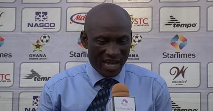 Tags: Coach Prosper NarteyDefends striker for penalty missFranck MbellaGhana Premier League