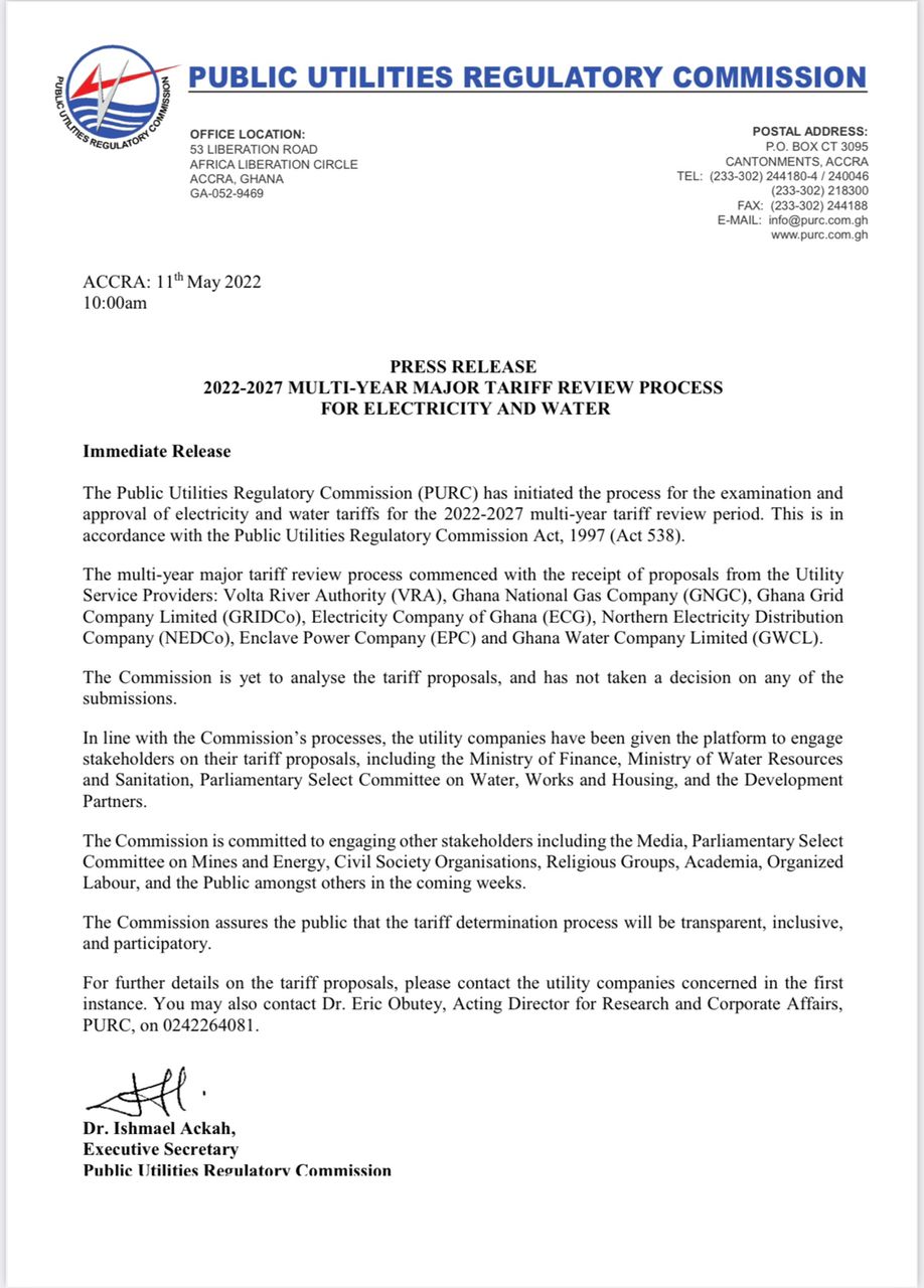 A statement from the PURC signed by its Executive Secretary, Dr Ishmeal Ackah, served noticed that despite their initiative, the Commission is yet to analyse the tariff proposals and has not taken a decision on any of the submissions.