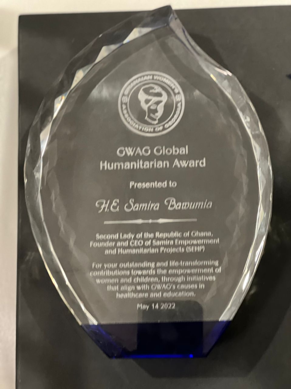 The award presented to Samira Bawumia, Second Lady of the Republic of Ghana