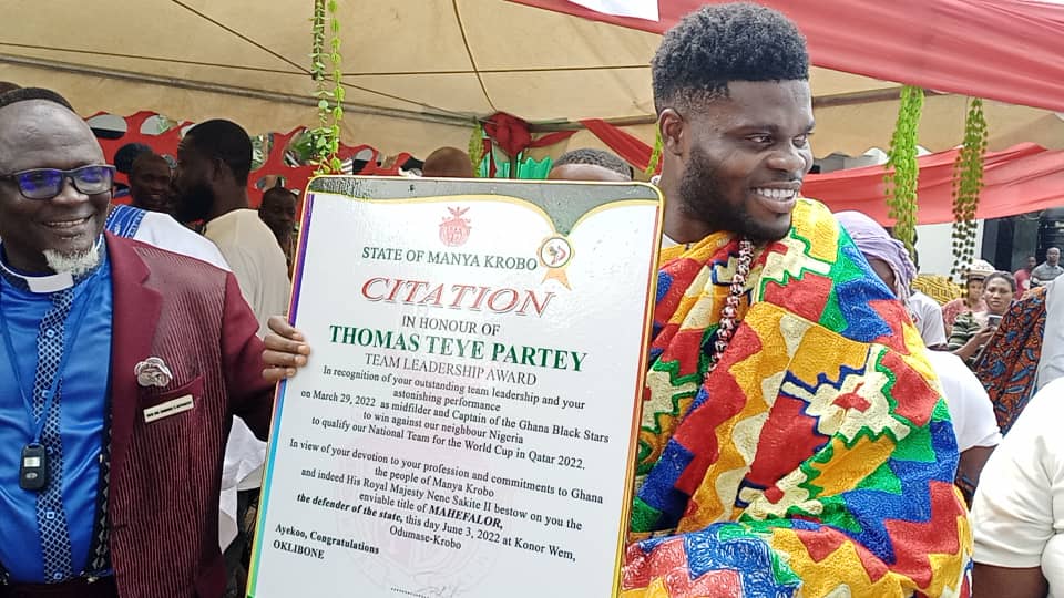 Black Stars deputy captain, Thomas Teye Partey, has been accorded ‘Mahefalor’ or the ‘Defender of the State’ title by chiefs and elders of Manya Krobo, in the Eastern Region.