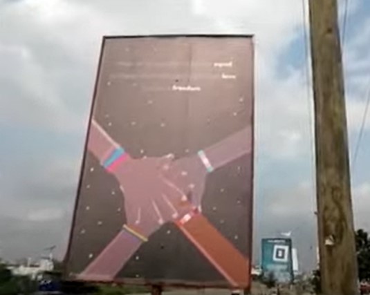 The pro-LGBTQ billboard mounted on the Accra-Tema Motorway has been pulled down by city authorities after a request from anti-LGBTQ activists.