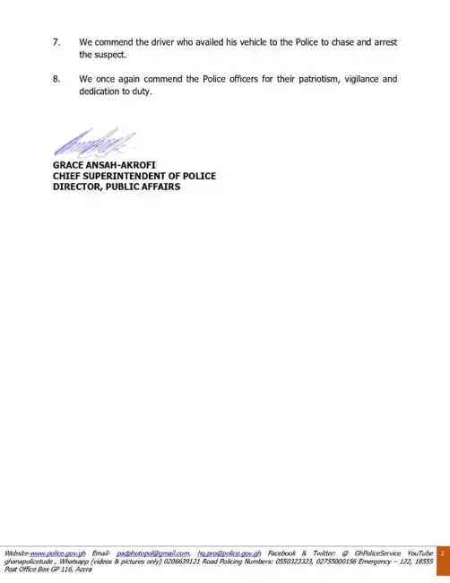 A statement issued by the police on Tuesday, June, 14 June 2022, and signed by the Director of Public Affairs, Chief Superintendent Grace Ansah Akrofi acknowledged the two officers for exhibiting “patriotism, vigilance, and dedication to duty.”