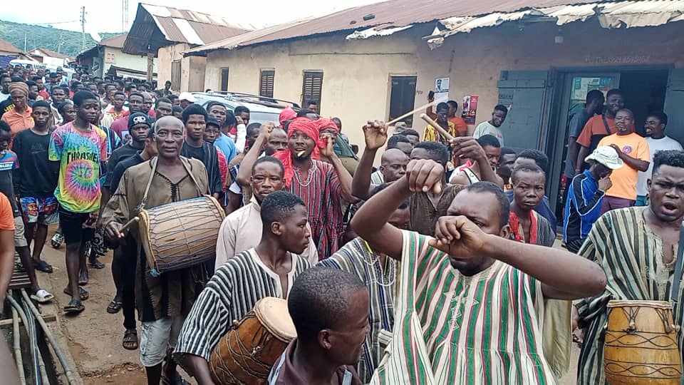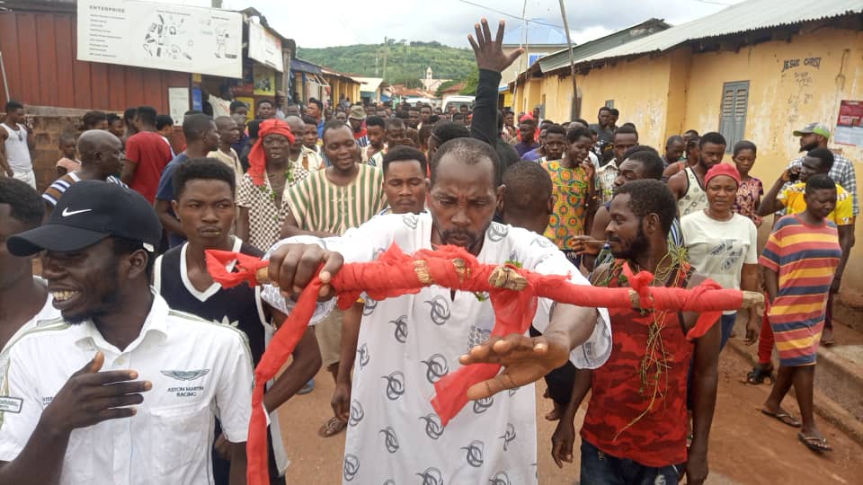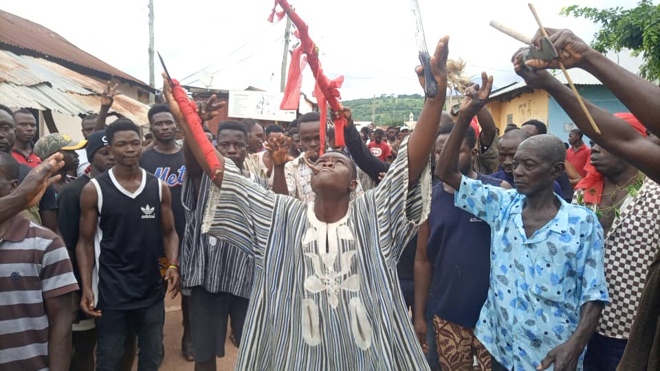 The demonstrators marched through the principal streets of Kpongunor, Nuaso, and Kpong streets, chanting war songs to express their displeasure about the entire exercise.