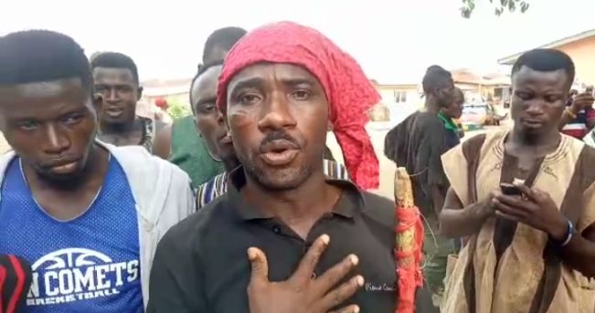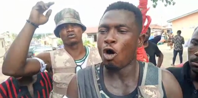 “So when they [Soldiers and Police] get to these places, whether they are soldiers or policemen, they can’t step foot here. That’s the exact reason we took the steps to signal the MCE and the MP here,” another male demonstrator expressed in Krobo dialect.