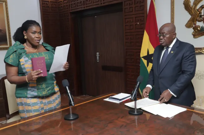 She was sworn into office on Friday, June 16, 2022, at the Jubilee House, after the President administered the Oaths of Office and Secrecy to her.