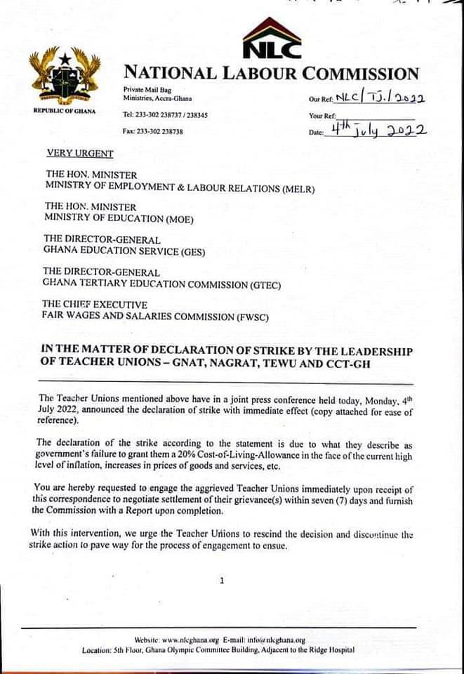 The unions including Ghana National Association of Teachers, National Association of Graduate Teachers, Teachers and Educational Workers Union, and the Coalition of Concerned Teachers withdrew their services nationwide on Monday, July 4, 2022.
