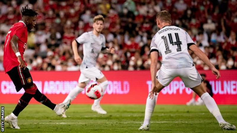 Jadon Sancho opened the scoring before Fred and Anthony Martial increased United’s lead against a Liverpool side that made 21 changes across the 90 minutes, including half-hour cameos for new signings Darwin Nunez and Fabio Carvalho.