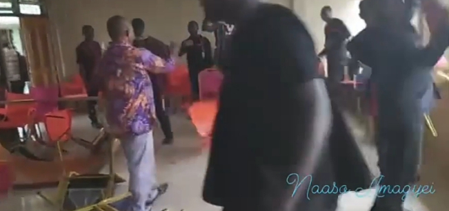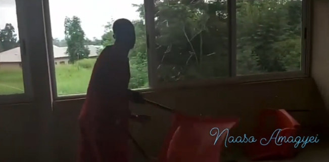 In a video available to Angelonline.com.gh, chairs and tables were seen flying through the windows into a nearby bush close to the facility.