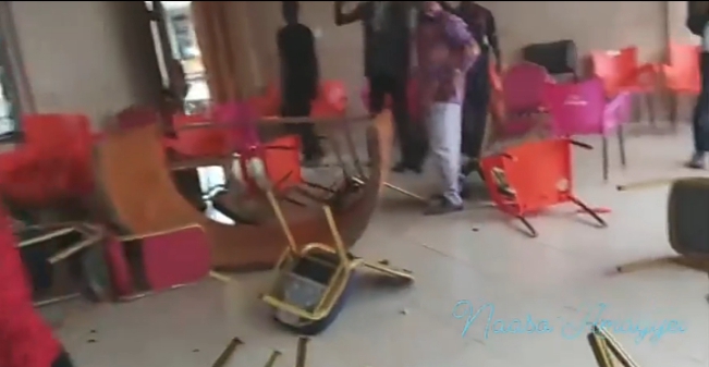 Some chairs, tables, plastic chairs, and Veronica buckets among others, were destroyed by the agitated assemblymen.