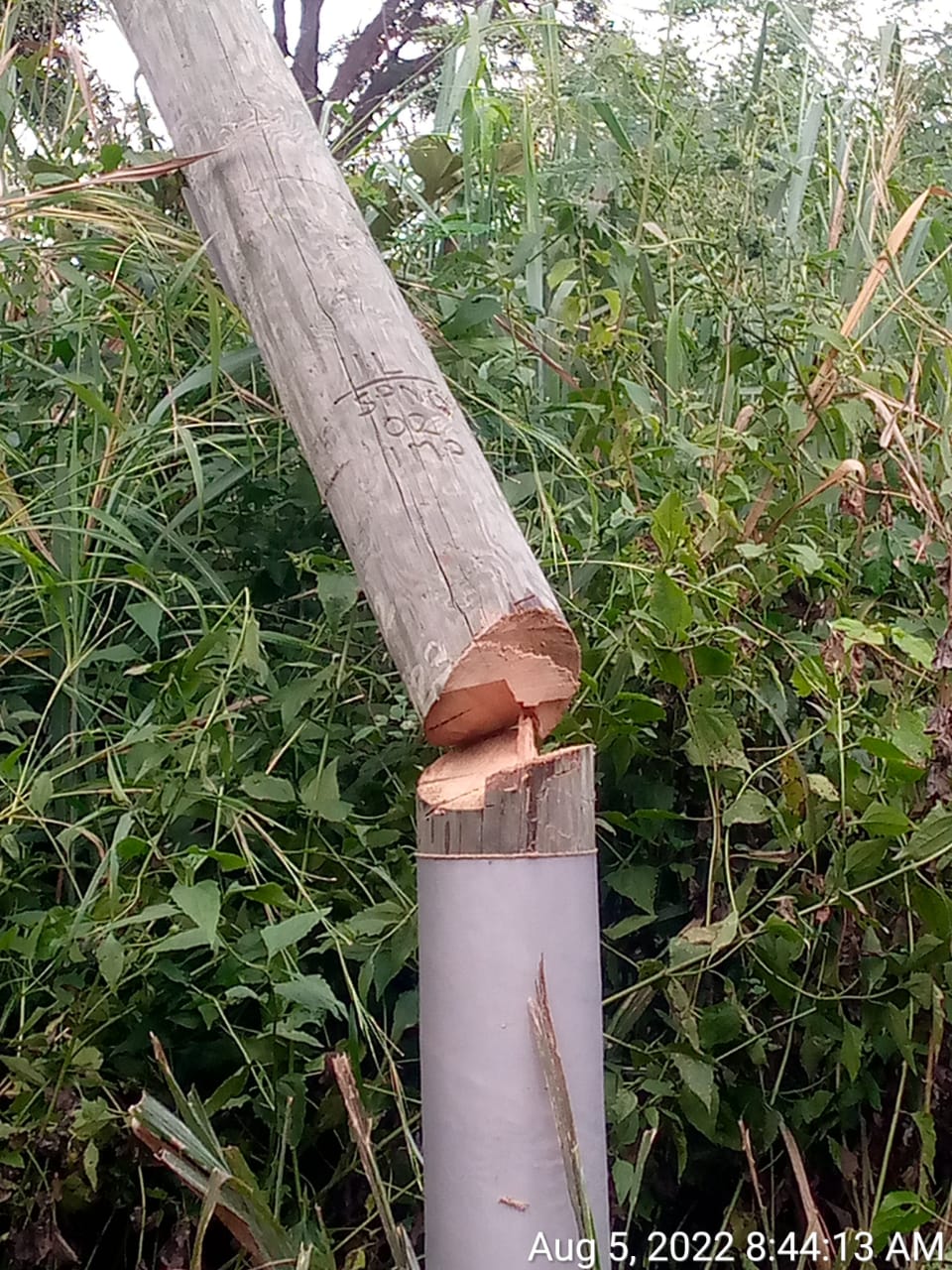Some high-tension wooden electricity poles within the Krobo enclave in the Eastern Region, have been tempered with chainsaw by some unidentified persons in the area.