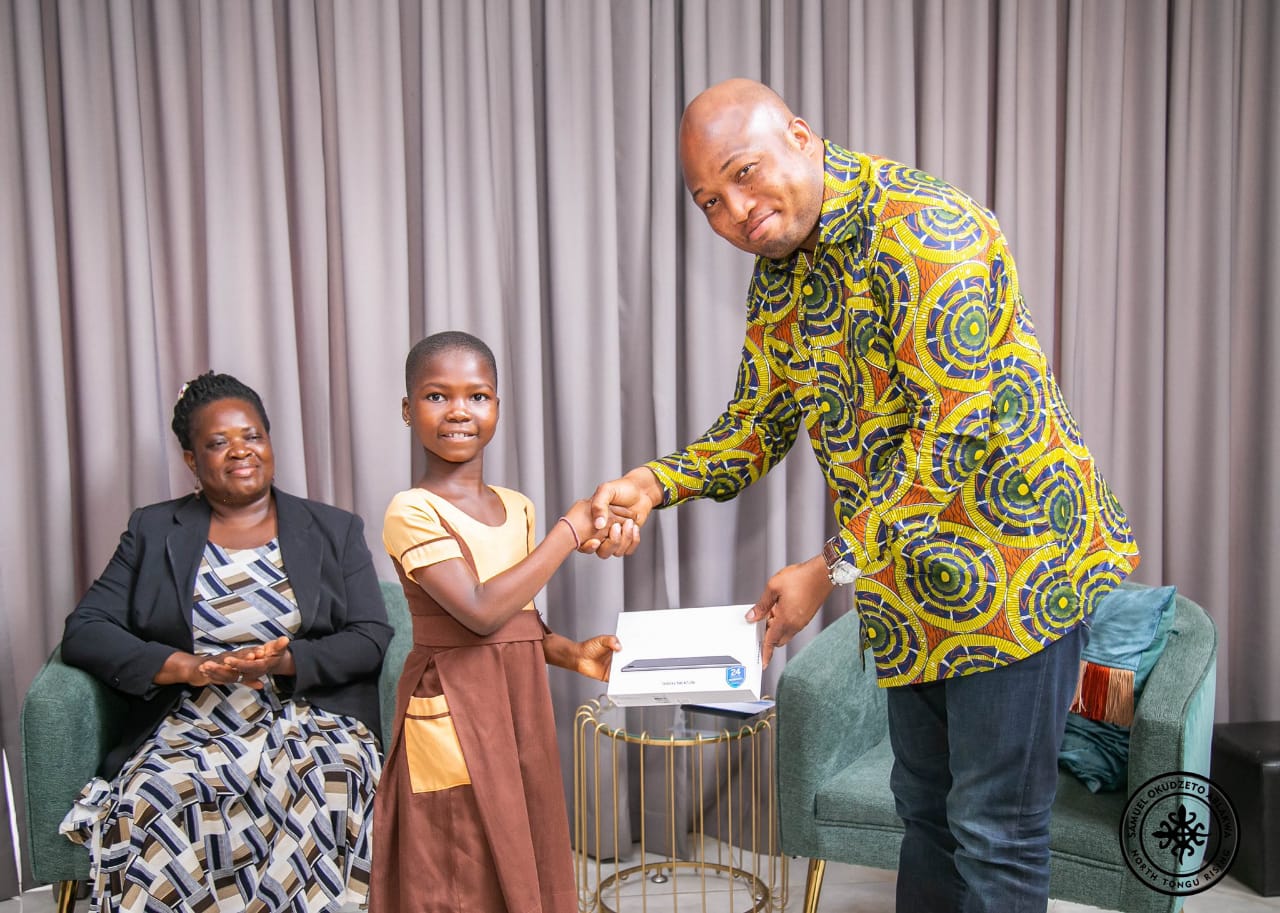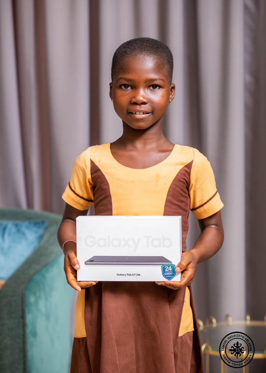 “I was delighted to receive a victorious delegation led by North Tongu Director of Education, Isabella Regina Ayimey as they presented to me the phenomenal Sameilia Mekporsigbe. I was glad to donate Samsung Tablet with a free internet connectivity and a wide array of e-reading collections for Sameilia.