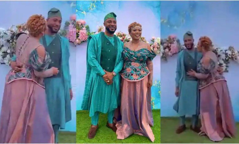 Bridget Otoo wore a floor-sweeping green kente combo outfit whiles her husband also appeared in a green Agbada outfit that matched that of his wife’s.