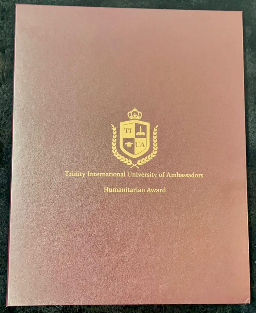 The Trinity International University of Ambassador also bestows on you an honorary Doctorate Degree.”