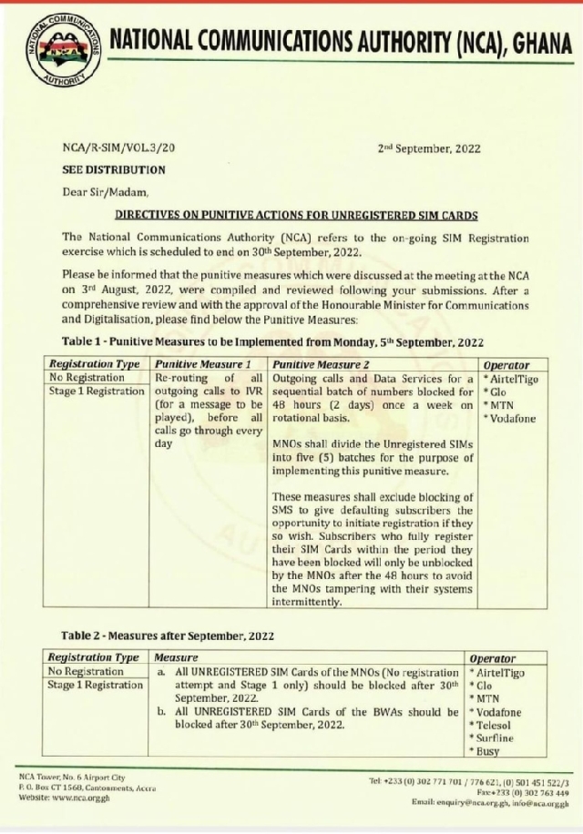 The National Communications Authority (NCA) has rolled out some punitive actions against unregistered SIM cards as part of the ongoing Sim Card re-registration exercise.
