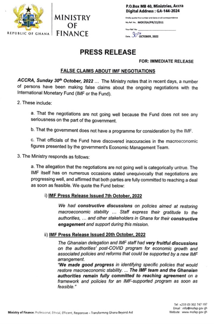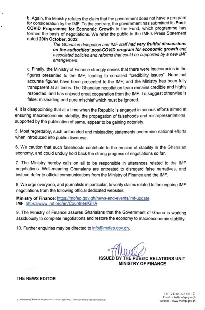 The Ministry thereby calls on all to be responsible in utterances related to the IMF negotiations and urged everyone including Journalists to verify claims related to the ongoing IMF negotiations to avoid holding the country back.