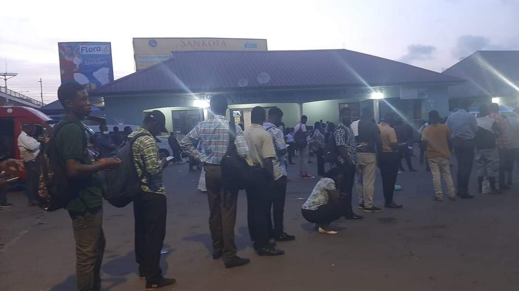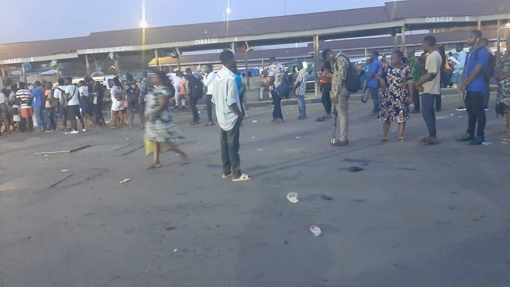 According to Angel News sources, many passengers were seen in long queues at the Circle Neoplan Station however, there were no transport operators to attend to them.