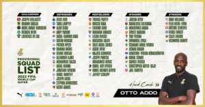 Head Coach of the Black Stars Coach Otto Addo has officially released his 55-man provisional squad presented to the Federation of International Football Association (FIFA) ahead of the 2022 World Cup in Qatar.