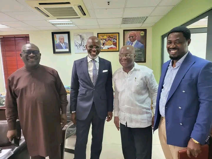 In the picture are OB Amoah, from left Mr. Gabby Otchere Darko, the Majority Leader and Joojo Rocky