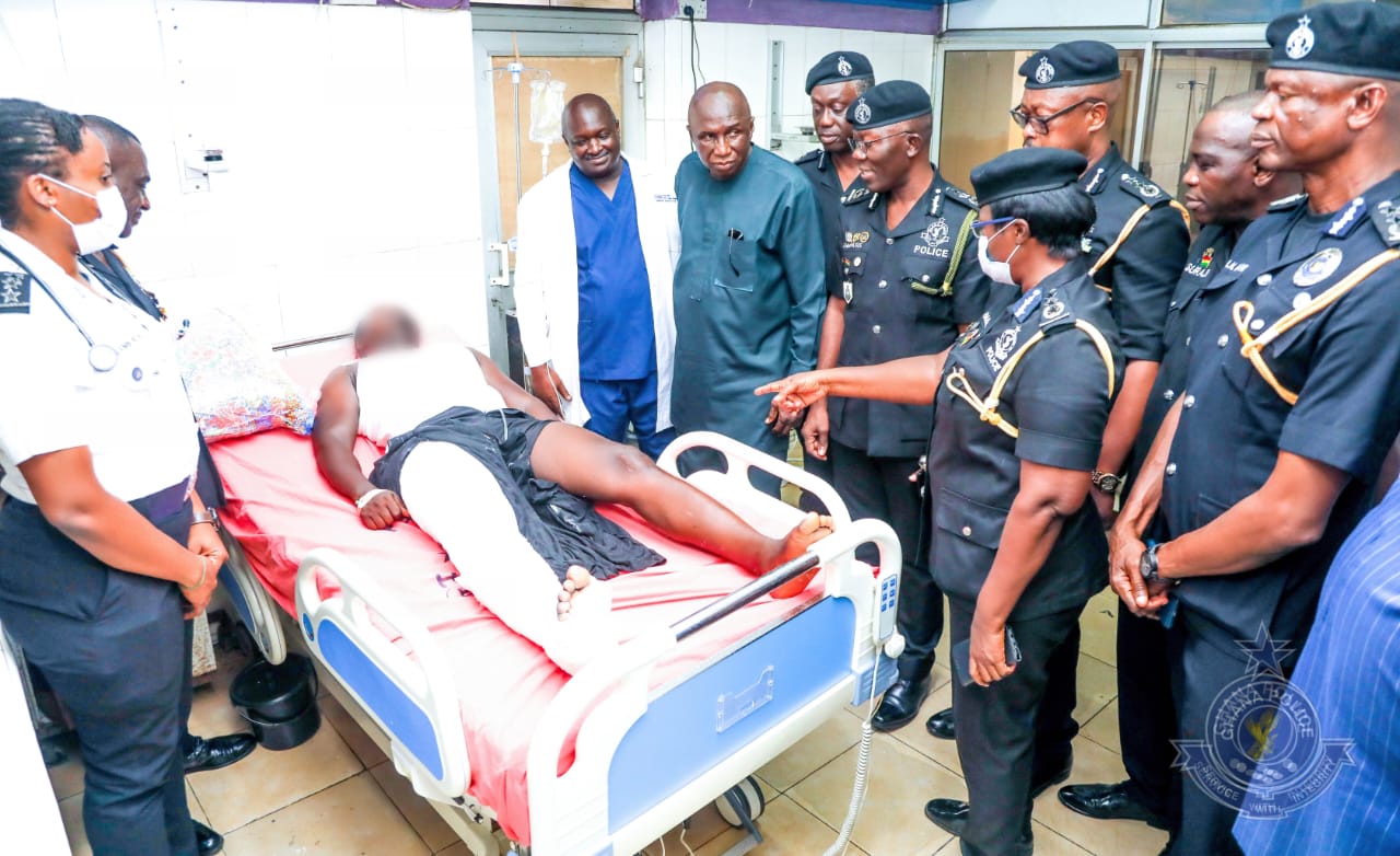 The Minister of Interior, Ambrose Dery has paid a visit to the police officer who was shot in a gun battle between the police and some armed robbers at the centre of the Caprice robbery incident in the Greater Accra Region.