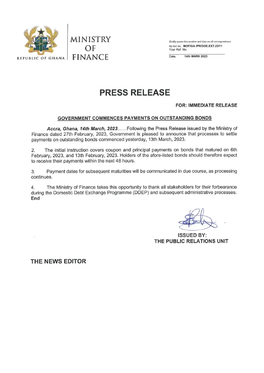 According to the Ministry of Finance, the processes to starts payment of these outstanding bonds commenced on Monday, March 13, 2023.