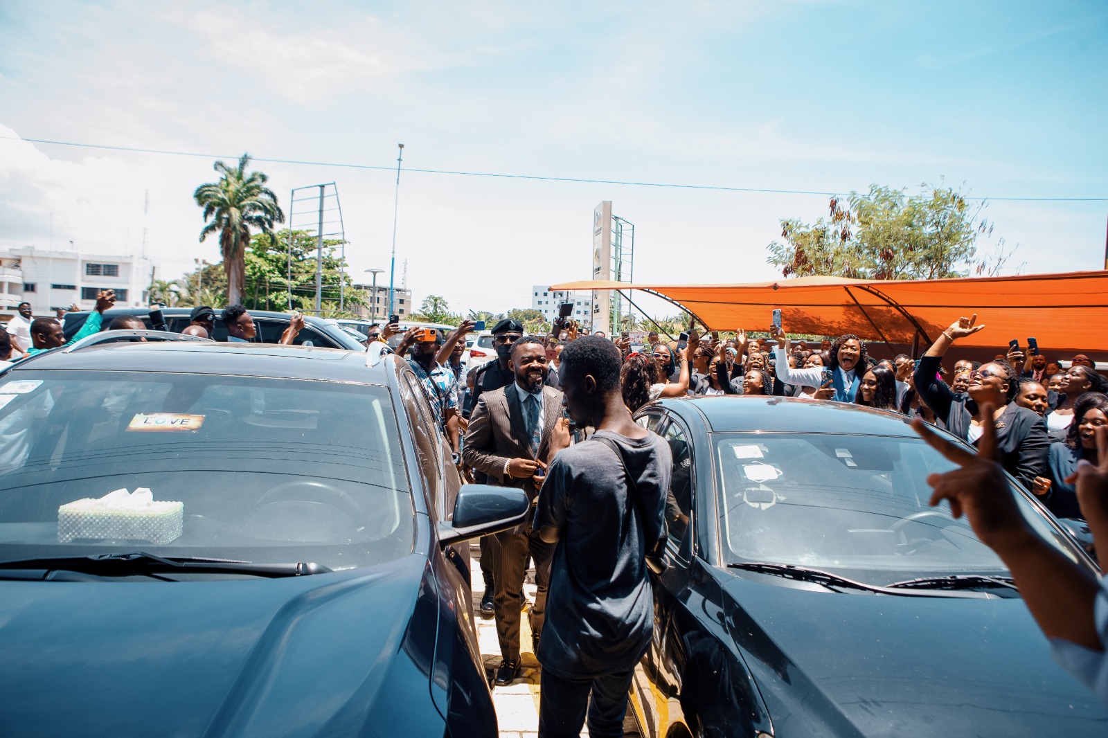 The celebration continued to the office where staff had gathered at the forecourt of the office premises to welcome him with some massive cheers.