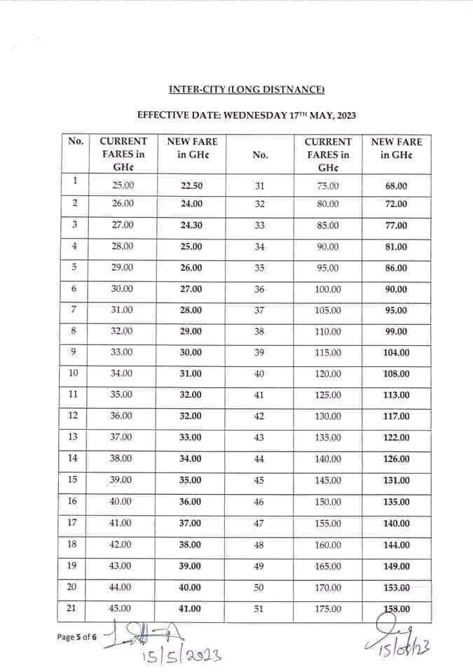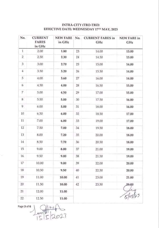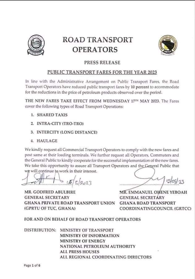 The statement issued on Monday, May 15, 2023, said the reduction affects shared taxis, intra-city (trotro), intercity (long distance) and haulage.