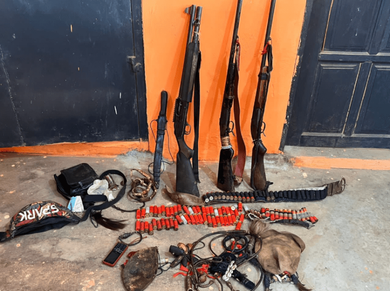 “A search conducted on them led to the retrieval of one (1) pump action gun, two (2) single barrel guns, one long knife, 80 live cartridges, some talismans and cowries,” the police said in its statement.