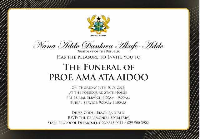 President Nana Addo Dankwa Akufo-Addo, having already announced a befitting state burial for the legendary writer has officially invited guests to honour the funeral at the forecourt of the State House.