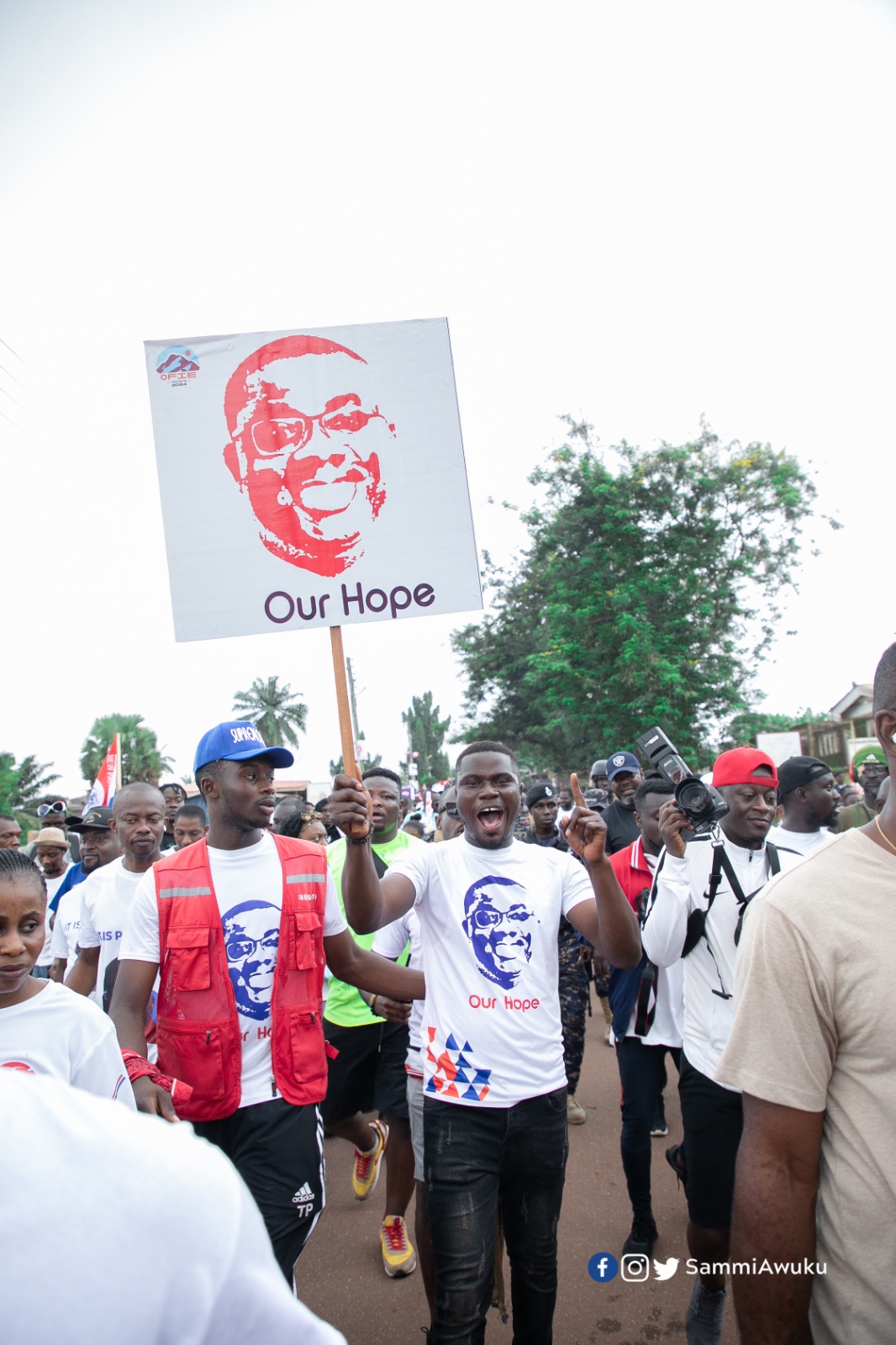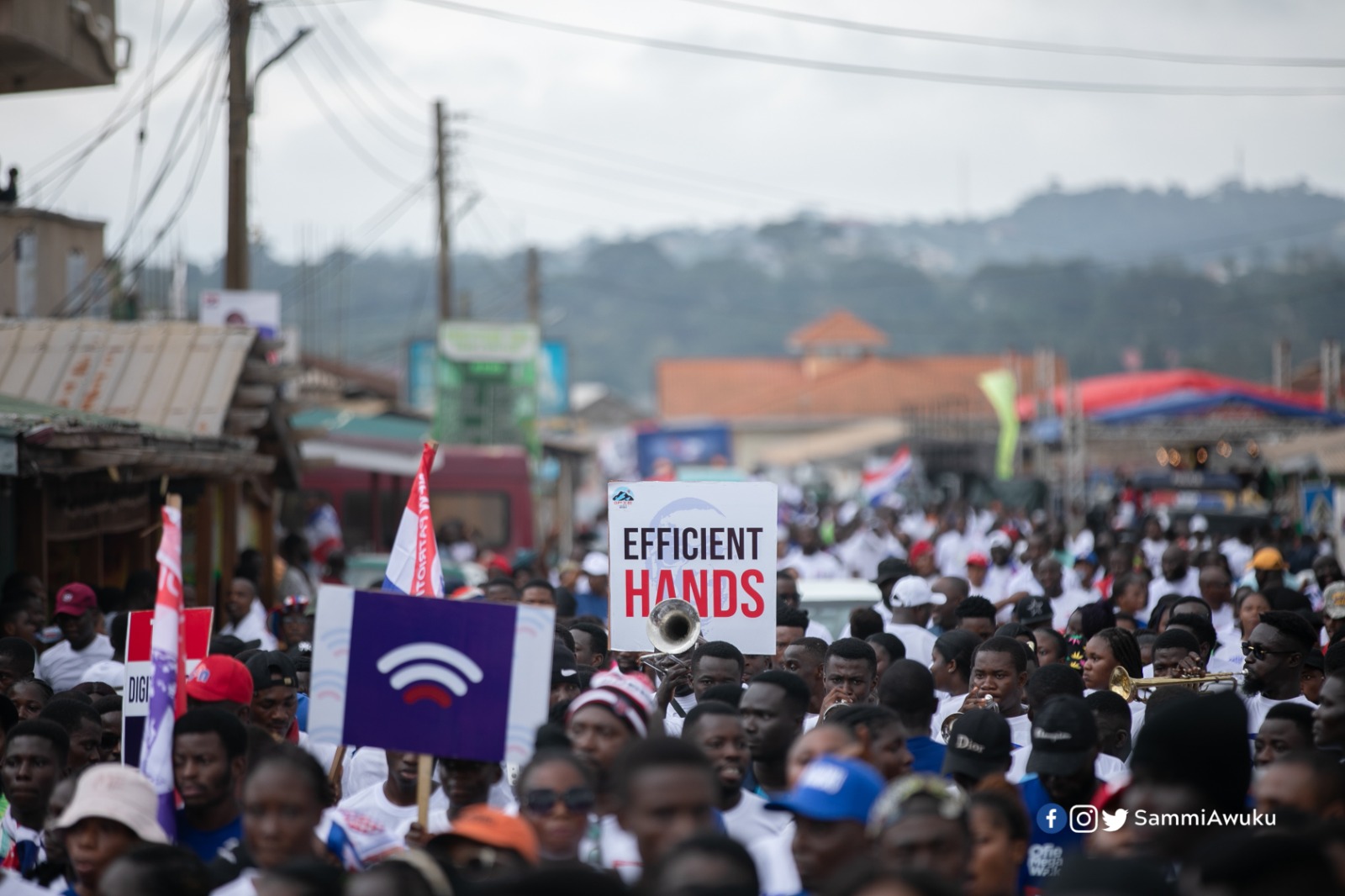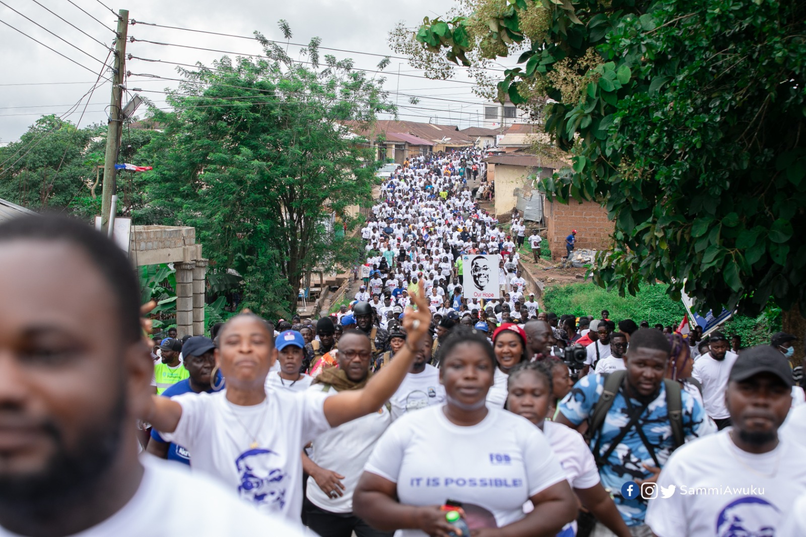 The walk, which started from the Amanokrom Park through the Mamfi Roundabout, the Larte Junction and finally ended at the Offie High street at Akropong, saw several thousands of young people, wearing T-shirts with inscription Sammi Awuku and Dr Mahamudu Bawumia and other inscriptions showing support for Mr Awuku.