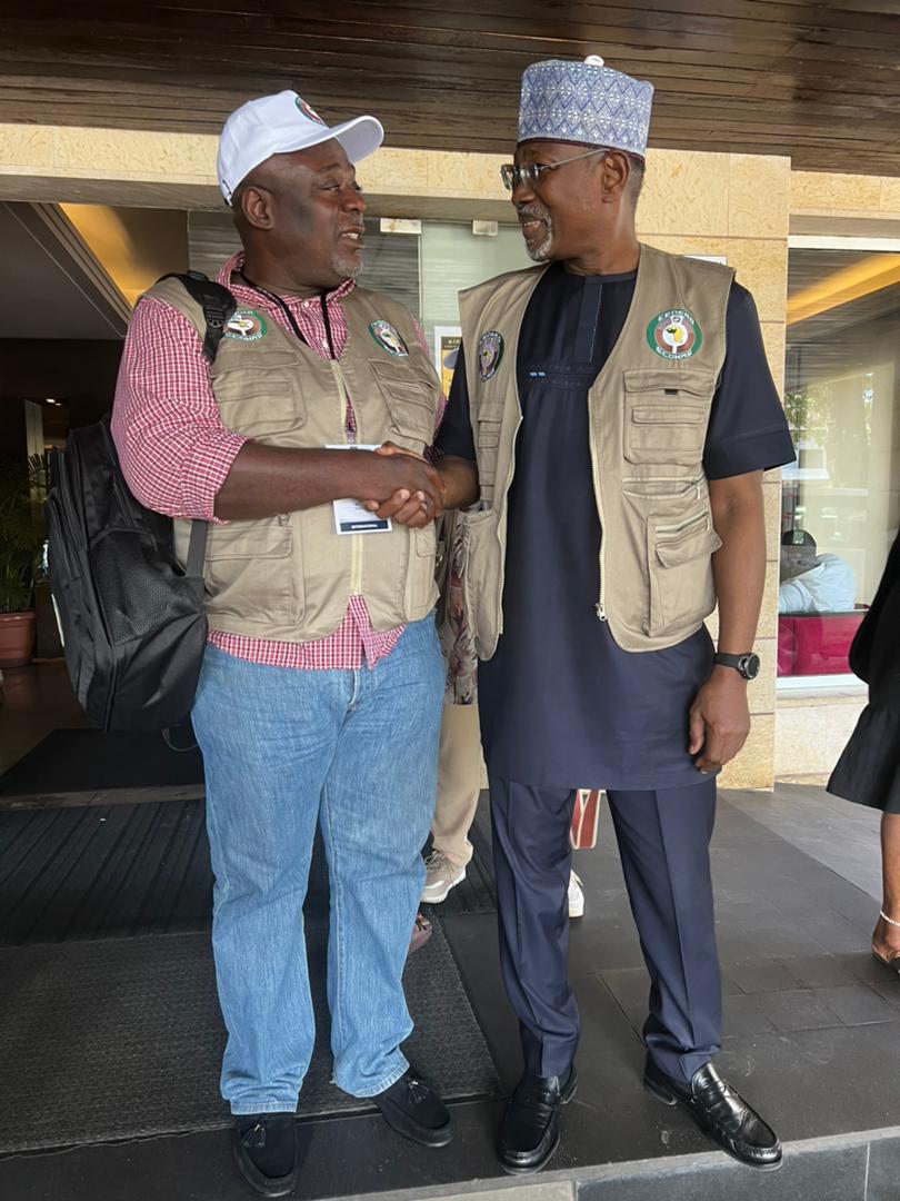 Koku Anyidoho with Professor Attahiru Jega, Head of ECOWAS Observation Mission to Liberia, & immediate-past Chairman of the Independent National Electoral Commission (INEC), Nigeria.