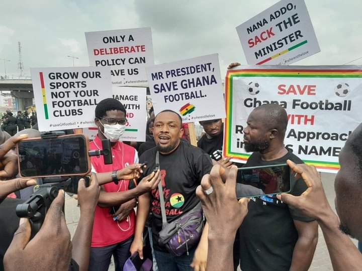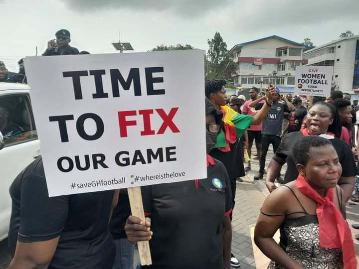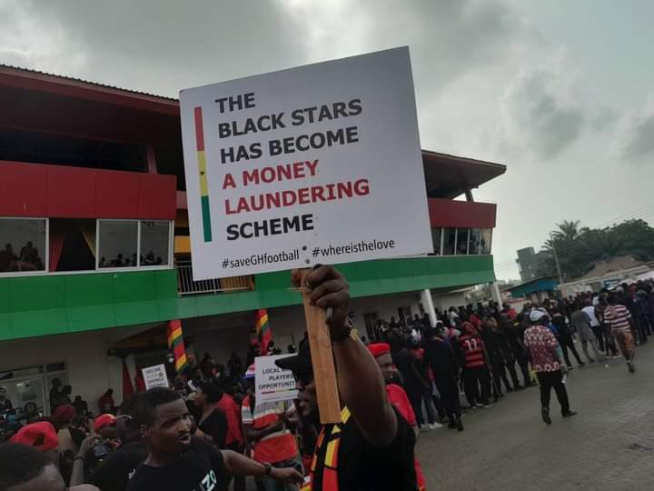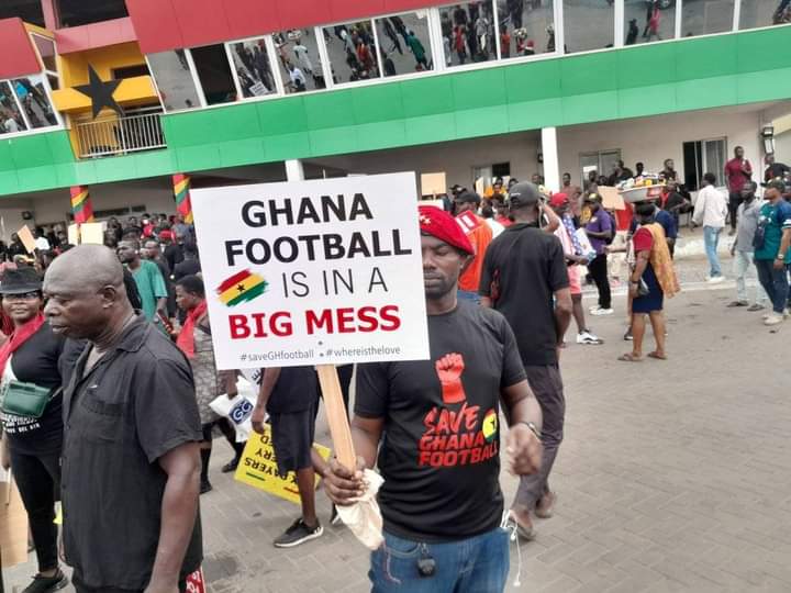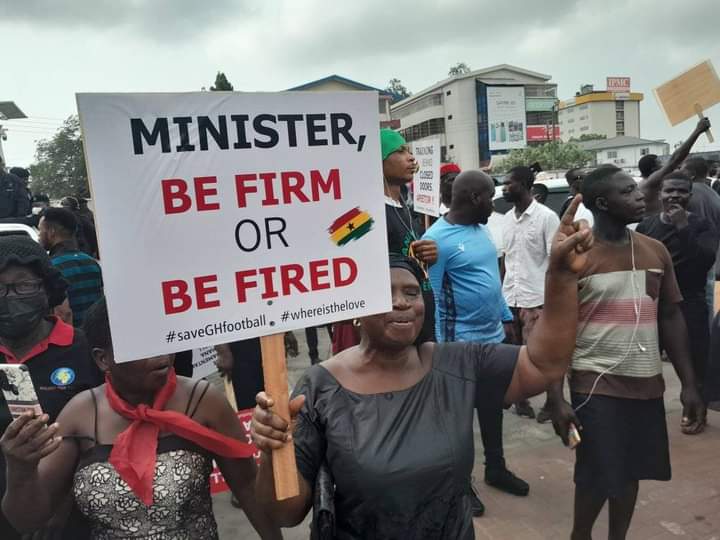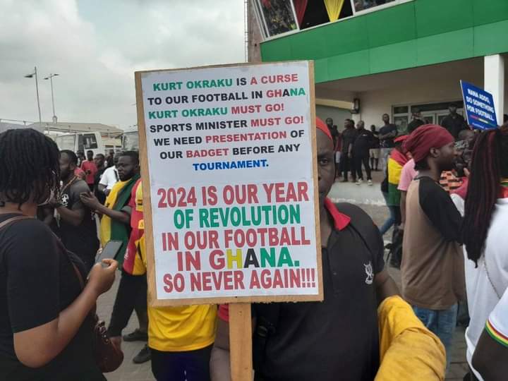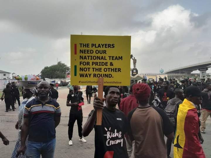 Thousands of football enthusiasts and people from all walks of life, on Wednesday, February 14, 2024, hit the national capital to protest recent poor outings by the country’s national teams, particularly the Black Stars.