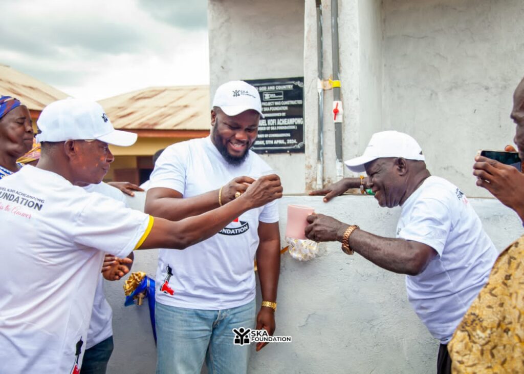 Mr. Samuel Kofi Acheampong, in commissioning the borehole facility, was accompanied by friends and members of the SKA foundation, including media personality, Kwame Tanko (KT) of Kumasi-based Angel FM.