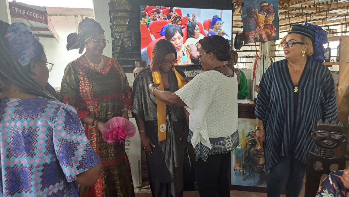 The Strong Woman Changemaker Africa is a non-profit organization established in Ghana and its aim is to empower Ghanaian women and children as well as African Women and Afro-descendant girls economically, politically and socially, and to participate directly to enable them to be agents of positive change.Ms. Lamisi Adene (Middle) being decorated with a piece of cloth as part of her participation in the conference