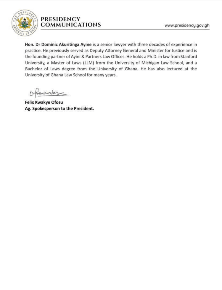 John Abdulai Jinapor is nominated as Minister-designate for Energy, while Dominc Ayine is the Attorney General and Minister of Justice designate.
