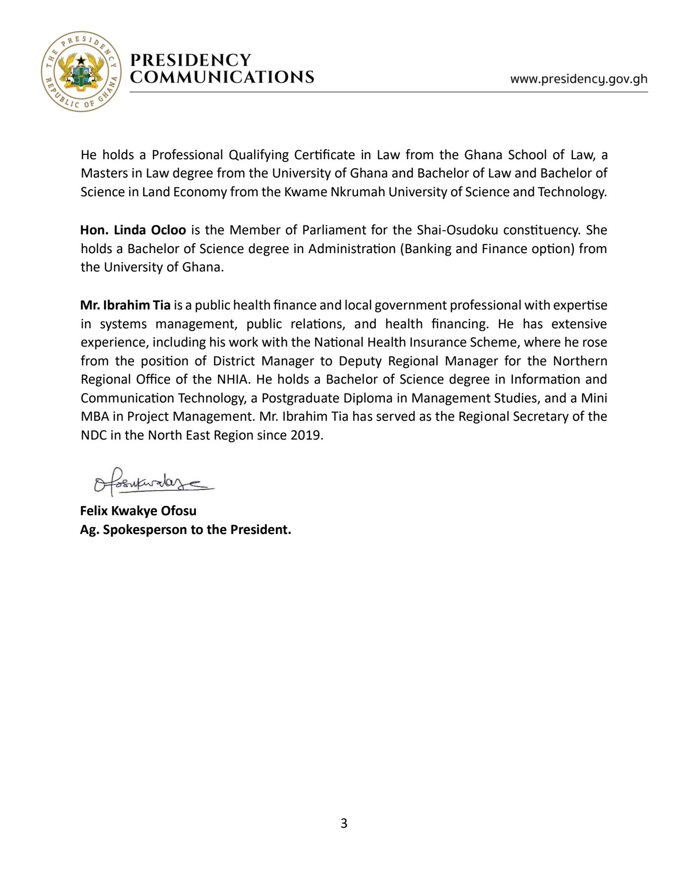 This was announced in a letter signed by the Presidential Spokesperson, Felix Kwakye Ofosu, addressed to the Speaker of Parliament.